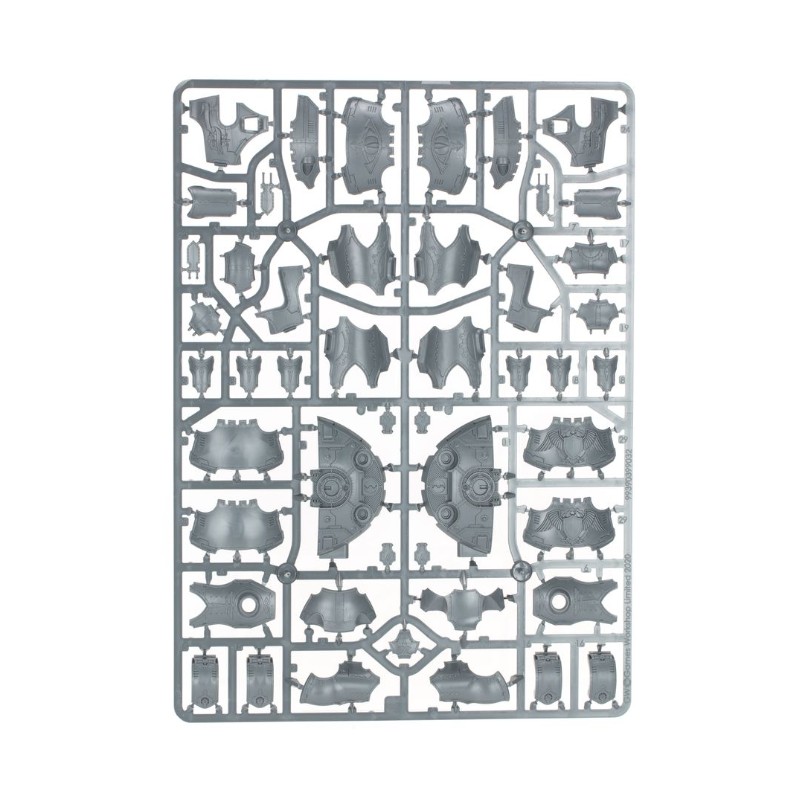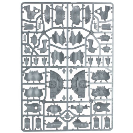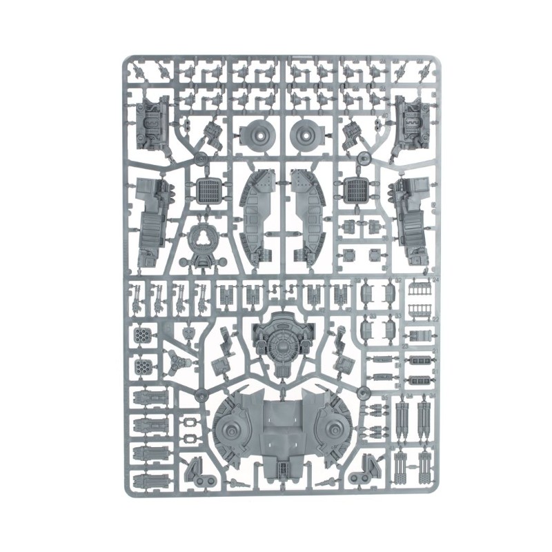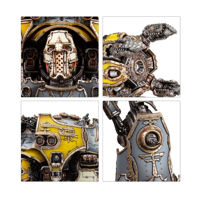 Ce kit est riche en détails et propose de nombreuses manières de personnaliser votre Titan. Vous trouverez quatre plaques faciales différentes pour la tête, ainsi que trois paires d'épaulières: une arborant des motifs loyalistes, une l'iconographie des Renégats, et une laissée vierge. Le kit dispose d'articulations en différents endroits, ce qui vous permet de modifier la position de votre Titan jusqu'au niveau de ses orteils broyeurs de chars. Nombre de ses armes sont également ajustables pour que vous puissiez les orienter vers leurs cibles.