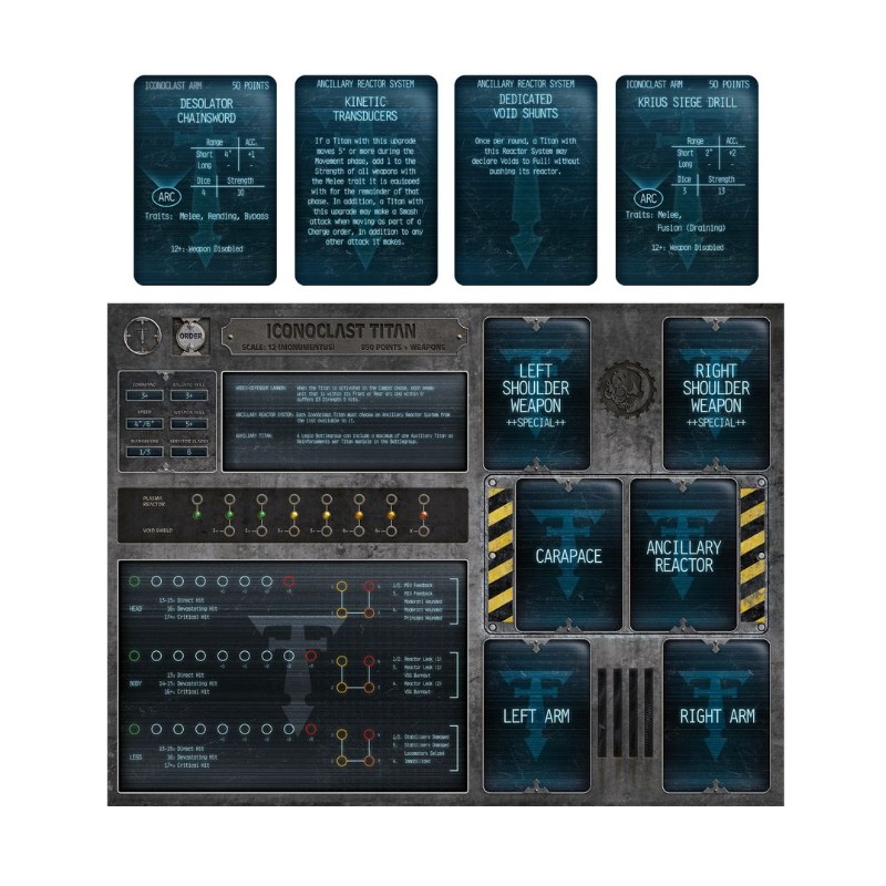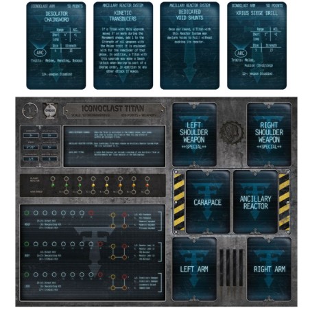 Le Titan Warmaster Iconoclast est une machine divine conçue dans un seul but: l'annihilation. Même ses réacteurs ont été modifiés pour engager l'ennemi en combat rapproché. Les rares personnes qui connaissent l'existence de l'Iconoclast craignent son apparition sur le champ de bataille, car face à la progression de cette machine divine, les blindés réputés pour être impénétrables ne sont guère plus qu'une gêne mineure. Là où il se rend, les civilisations s'écroulent, et seul un sillage de ruines marque son passage.