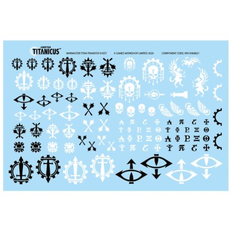 - 1x Planche de Décalcos de Titan Warmaster Adeptus Titanicus