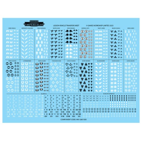 - 1x Planche de Décalcos de Véhicules de Légion pour Legions Imperialis proposant 1118 décalcos