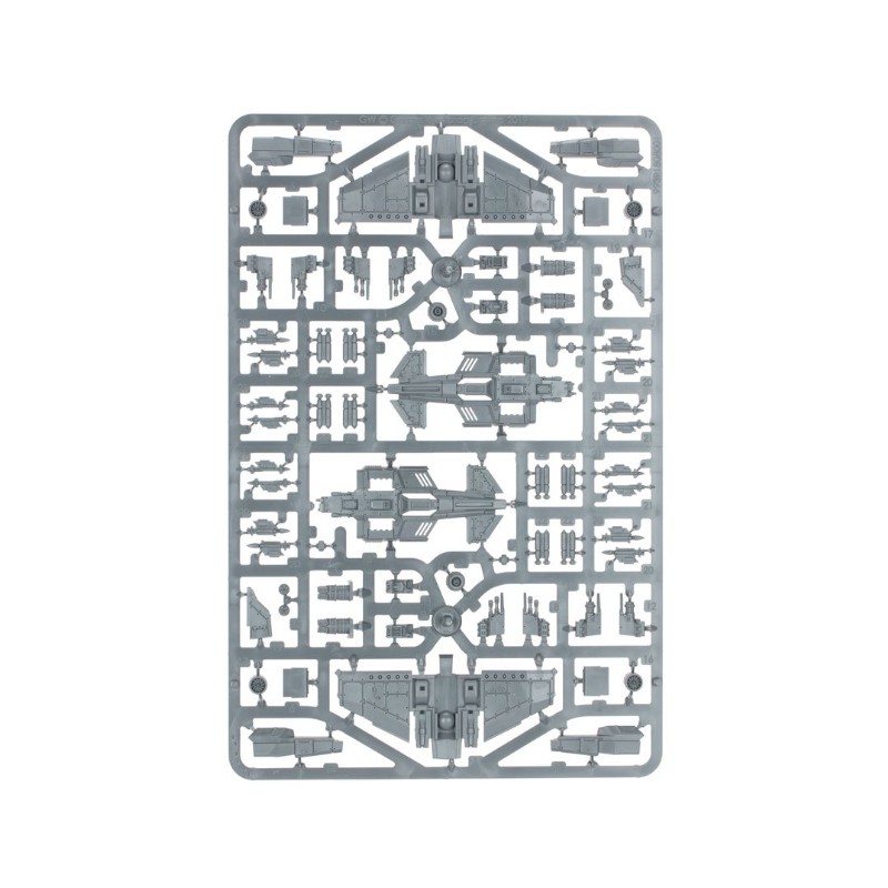 - 4x figurines de chasseurs Thunderbolt en plastique (tout ou partie de ces figurines peuvent être assemblées avec des canons à bolts Avenger plutôt qu'avec des autocanons quadruples. Le kit contient également un choix de missiles Hellstrike, de missiles Skystrike ou de bombes externes avec lesquels équiper vos figurines.)