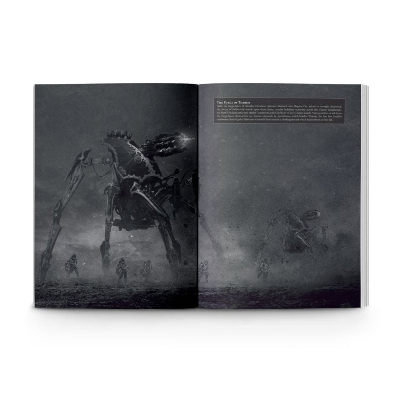 Ce livre de 128 pages contient une histoire complète de la faille qui a déchiré le Mechanicum, détaillant les technologies corrompues employées par le Dark Mechanicum, comme on l'a surnommé. Vous découvrirez le Doom of Magma City, le plus grand conflit de cette guerre intestine, et les forces qui y ont pris part. Vous y trouverez également des règles pour le Mechanicum loyal et le Dark Mechanicum traître, ainsi que leurs Formations et Détachements.