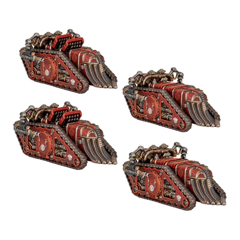 Ce kit en plastique permet d'assembler quatre Karacnos Assault Tanks, de puissantes plateformes d'artillerie mobiles à déployer dans vos armées du Mechanicum ou du Mechanicum Noir, ou en tant qu'alliés dans vos armées de Legiones Astartes ou de Solar Auxilia, lors des parties de Legions Imperialis. Chacun d'entre eux est une plateforme de tir bien protégée, capable de décimer l'infanterie à l'aide de ses obus irradiés et de ses canonnades de mousquets à foudre. Ils peuvent être assemblés avec les batteries de mortiers exposées ou rentrées. Ces puissants chars viendront renforcer votre armée avec leur terrible puissance de feu et pourront facilement interdire l'accès à certaines zones du champ de bataille.
