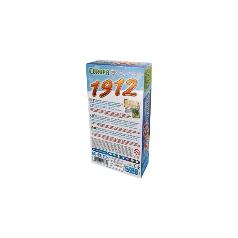 Les Aventuriers du Rail – Europe 1912 est une extension qui enrichit le jeu de base avec de nouvelles cartes Destination grand format et trois variantes de jeu inédites. Elle renouvelle les objectifs et les stratégies tout en conservant la simplicité et le plaisir qui font le succès des Aventuriers du Rail.