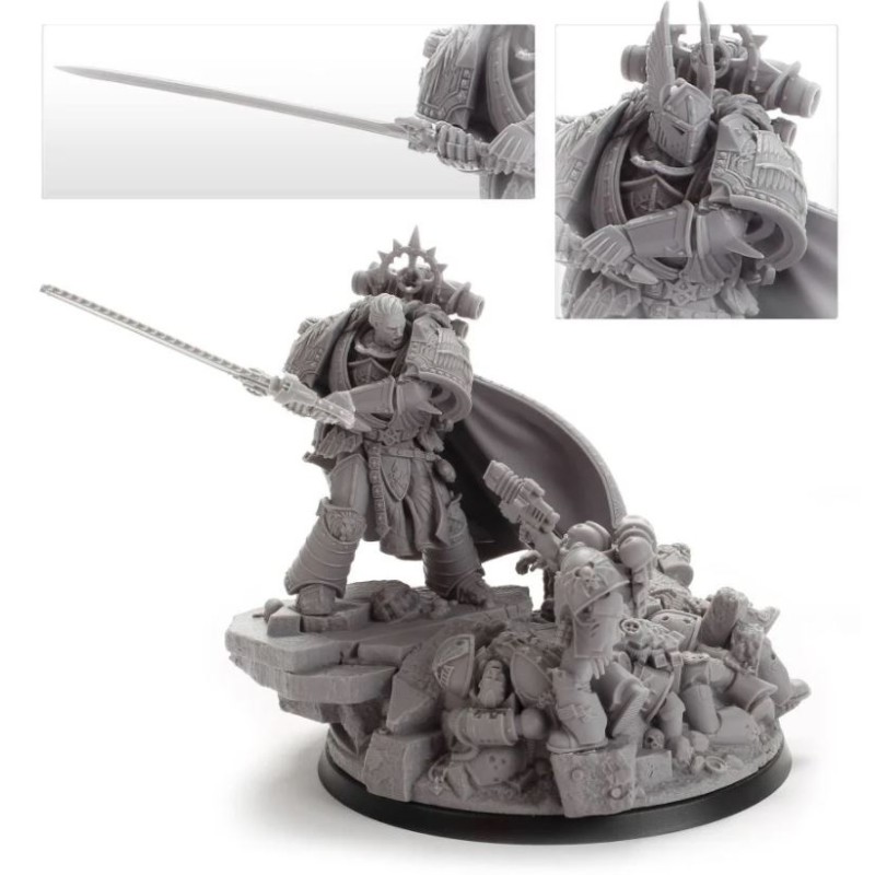 Lion El'Jonson est sculpté au milieu de la bataille, balançant son épée pour tuer les ennemis de l'Empereur. Il peut être assemblé avec l'épée du lion ou la lame du loup et est même livré avec un fourreau différent pour chacun. Vous pouvez également décider si le Primarque de la I Legion porte le légendaire Heaume du Lion pour compléter son armure, connue sous le nom de Panoplie Léonine, ou s'il va tête nue. Sa base de jeu comprend Lion El'Jonson debout au sommet d'un escalier rocheux. Cela s'insère dans une base d'affichage plus grande qui crée un diorama où il est entouré de Night Lords vaincus (ou bientôt vaincus).