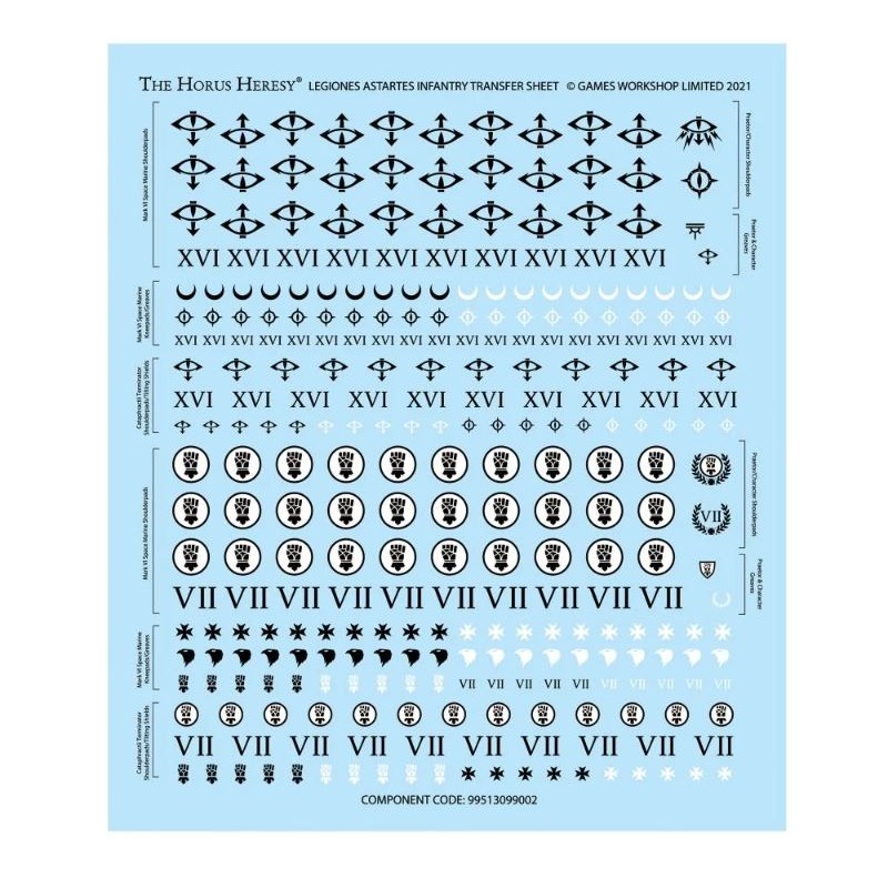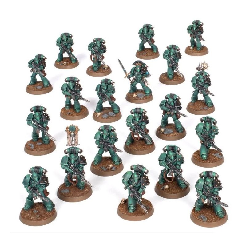 Ce set se compose 352 pièces plastique, et est fourni avec 20x socles ronds Citadel de 32mm et 1x Planche de Décalcos d'Infanterie Legiones Astartes. Ces figurines sont fournies non peintes et nécessitent assemblage.
