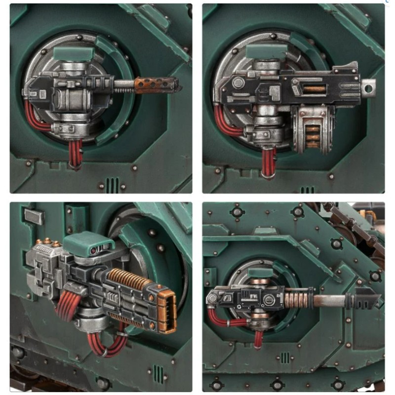 Ce kit contient également les éléments pour doter le Cerberus d'une arme sur pivot : un lanceur Havoc, un bolter lourd, un lance-flammes lourd, un multifuseur, ou une arme combinée disponible en cinq configurations (bolter, lance-flammes, fuseur, plasma ou volkite). Il contient également un projecteur, un missile traqueur, et des options esthétiques comme des crochets de remorquage, des icônes de Loyalistes et de Renégats, et au choix un artilleur ou observateur space marine, ou une écoutille fermée.