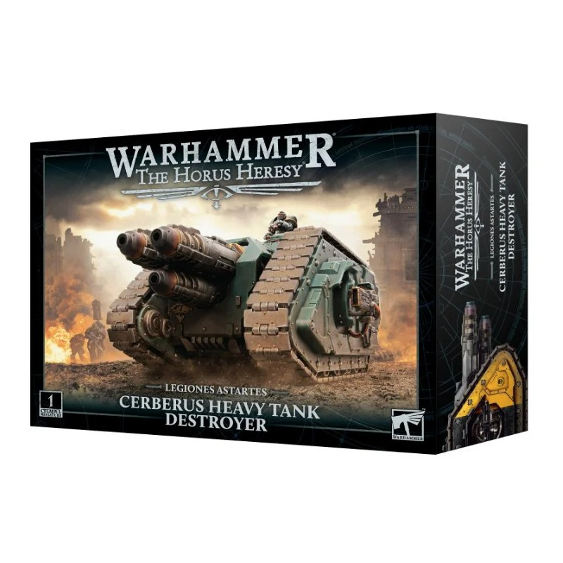 Ce kit plastique permet d'assembler un Cerberus de Légion, un énorme char capable d'éliminer même les cibles les plus imposantes. Sa coque blindée est dominée par la batterie laser à neutrons à triple fût qui donne son nom au char, mais vous trouverez également de nombreuses options d'armes auxiliaires. Le Cerberus dispose de deux armes latérales: au choix des bolters lourds, des lance-flammes lourds ou des coulevrines volkites. Ces armes peuvent être assemblées sans colle pour que vous puissiez ajuster leur position comme vous le souhaitez.