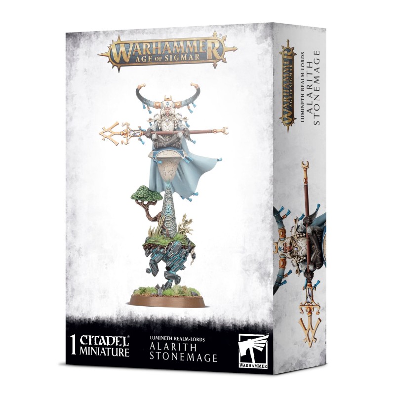 Les Alarith Stonemages sont des lanceurs de sorts précieux pour appuyer une armée de Lumineth Realm-lords, grâce à des sorts persistants, au Domaine des Montagnes et à la gravité elle-même pour détruire vos ennemis et galvaniser vos forces. Ils servent aussi bien seuls qu'à la tête d'un groupe d'Alarith Stoneguard, en conférant l'aptitude à percer les armures avec une facilité méprisante.