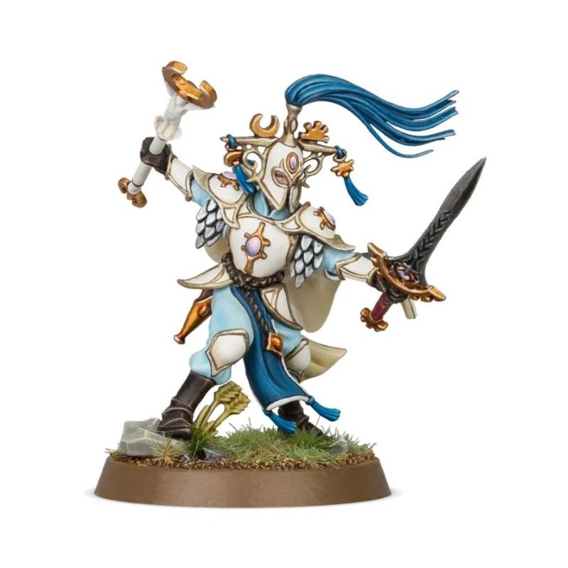Ce héros combattant polyvalent peut aussi bien lancer des sorts de loin qu'affronter les ennemis des Lumineths au corps à corps. Il combat seul la plupart du temps, aussi est-il fort habile à gagner une position clé et à se battre loin du reste de vos forces.