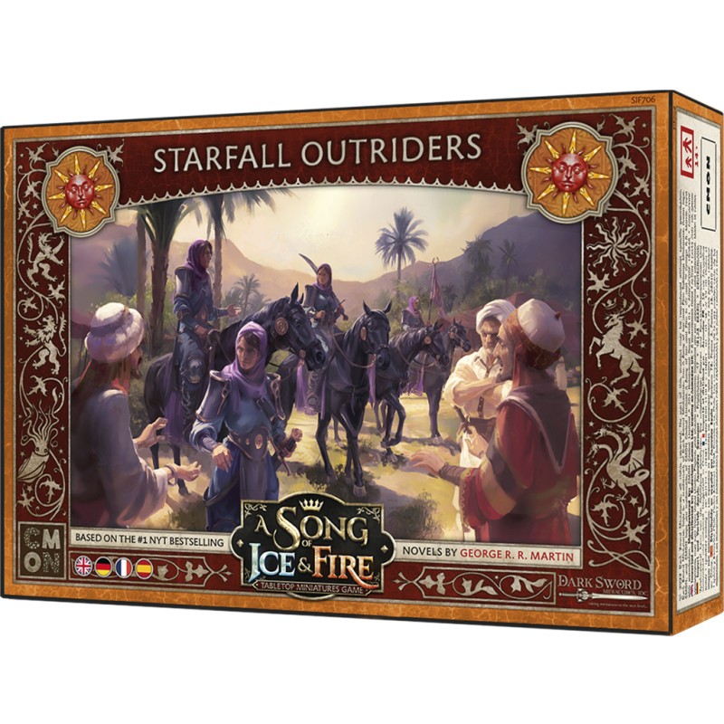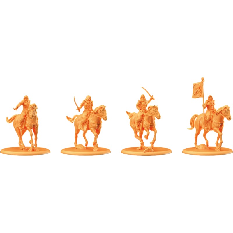 Description du produitLa Maison Dayne est la plus puissante vassale de Dorne. Son siège se situe dans la forteresse des Météores. Les Dayne sont connus pour leurs talents équestres et forment une partie non négligeable des forces montées de la Maison Martell. Les Éclaireurs des Météores sont des cavaliers légers dont la fonction consiste à harceler l’ennemi et à soutenir les unités alliées à proximité. Sous le soleil de plomb, du désert, l’arrivée de ces troupes en tuniques violettes constitue un symbole fort pour les amis de la Maison Martell.