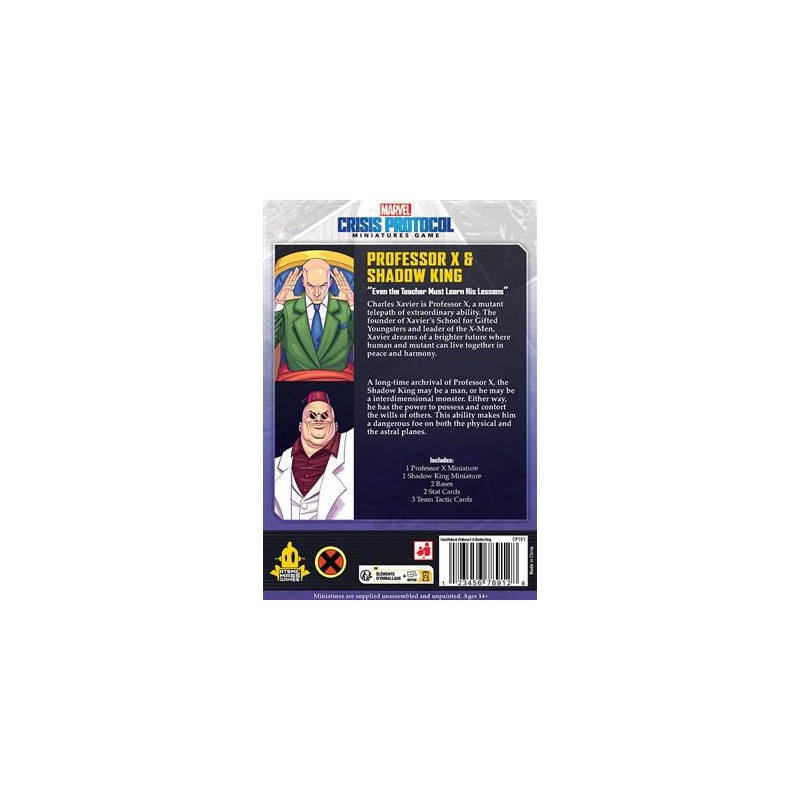 Description du produitLes joueurs domineront le plan astral du champ de bataille avec le pack de personnages Professeur X et Shadow King. Le Professeur X et Shadow King sont tous deux des manipulateurs mystiques dotés de capacités uniques d'altération du champ de bataille.