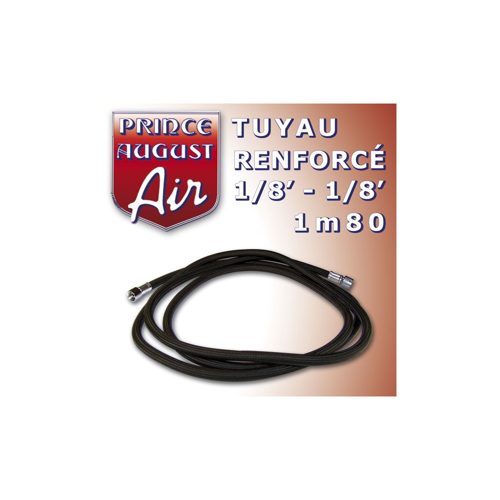 Tuyau d’air renforcé d’1m80 à gaine tressée, sorties 1/8′ – 1/8′.