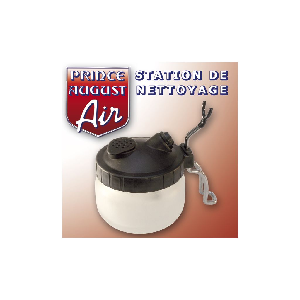 Description du produitStation de nettoyage. Pour un nettoyage facile et sans projection. Cette station de nettoyage est dotée d’un espace d’insertion de votre aérographe afin de procéder à la pulvérisation de la peinture, du nettoyant, des dépôts et autres salissures à l’intérieur du bocal. Le couvercle est assorti d’un support qui facilite la pose de votre matériel.