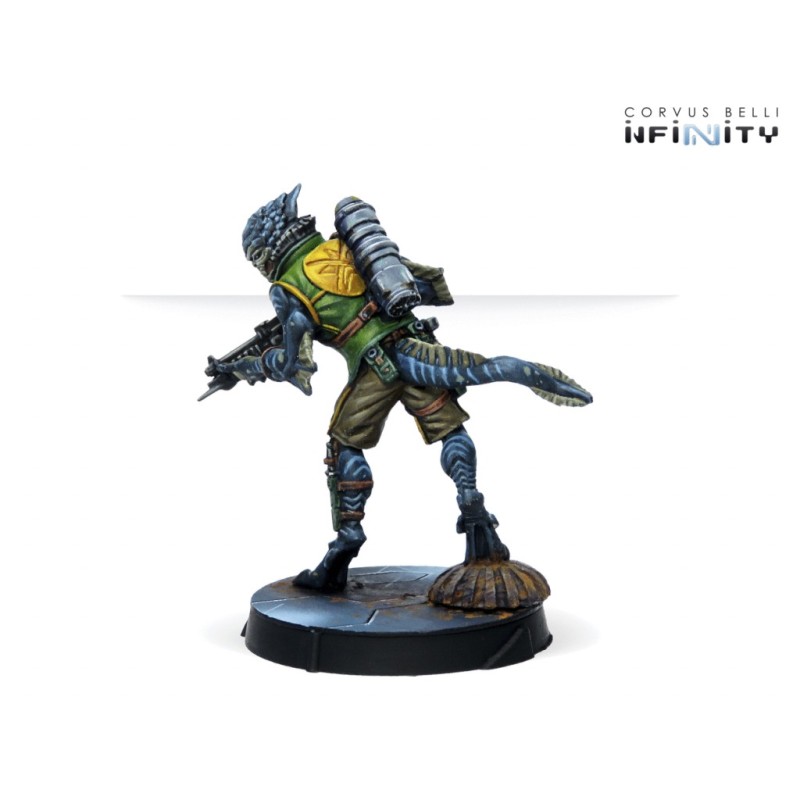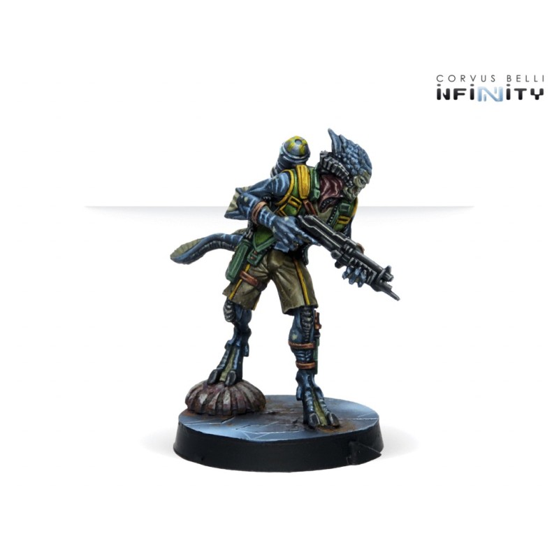 Ce blister contient 1 figurine en métal pour le jeu Infinity. Le socle est inclut. La figurine est à assembler et à peindre.