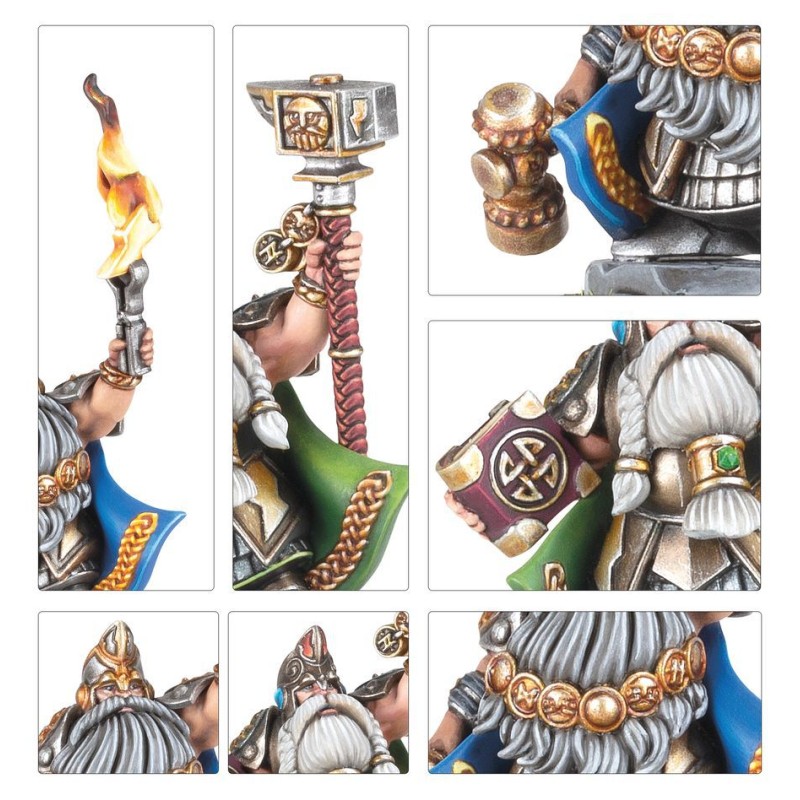 Ce kit en plastique permet d'assembler un Forgerune Nain pour les forces des Forteresses Naines dans les parties de Warhammer: The Old World. Ce sage maître de la forge porte une armure lourde et s'accompagne d'un choix de deux têtes barbues. Le kit contient un choix de deux marteaux rituels, et le Forgerune peut également porter soit une rune ardente tenue dans une pince soit un grimoire ornementé coincé sous son bras.