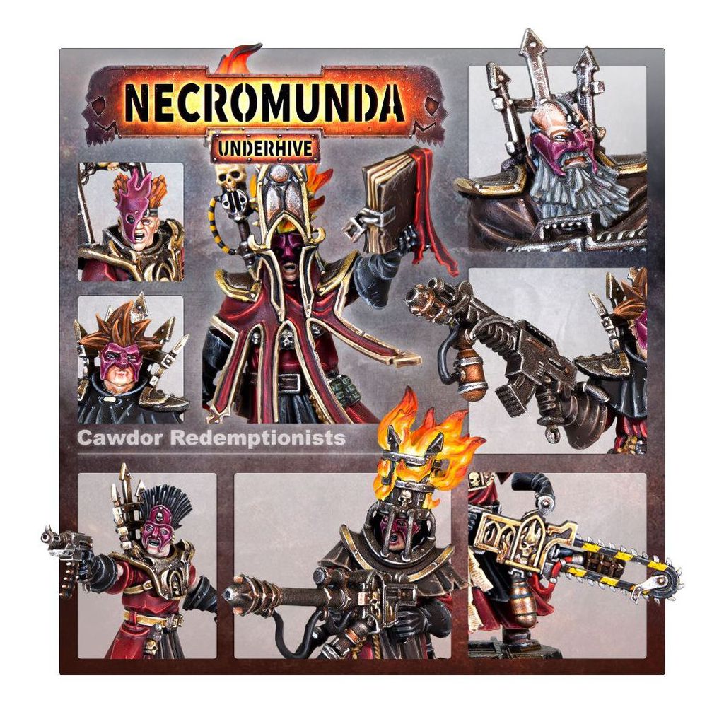 Enrichissez votre gang Cawdor avec ces six combattants ou lancez votre propre Croisade Rédemptionniste. Le Redemptor Priest est un chef de gang, suivi au combat par son Deacon (un Champion de gang), trois Brethren (Gangers) et un Zealot (Novice). Que vous les aligniez en tant que gang à part entière ou qu'ils servent de renforts à vos combattants Cawdor existants, leur armement unique aura tôt fait de purger le Sous-monde de ses péchés.