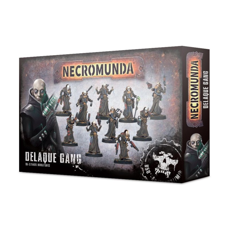 D'une conception habile qui met au goût du jour le gang classique de Necromunda, ce kit vous permet de monter une escouade mortelle de gangers Delaque. Il vous propose tout un éventail d'options de personnalisation, qui permet de doter chaque ganger d'armes exotiques et meurtrières comme le long fusil et le pistolet à fléchettes. Parallèlement, un grand choix de têtes et d'accessoires vous permet de personnaliser chaque ganger pour éviter les doublons. Bref, une fois que vous vous êtes muni des règles et que vous désirez mettre sur pied ou agrandir un gang Delaque, c'est la boîte qu'il vous faut.