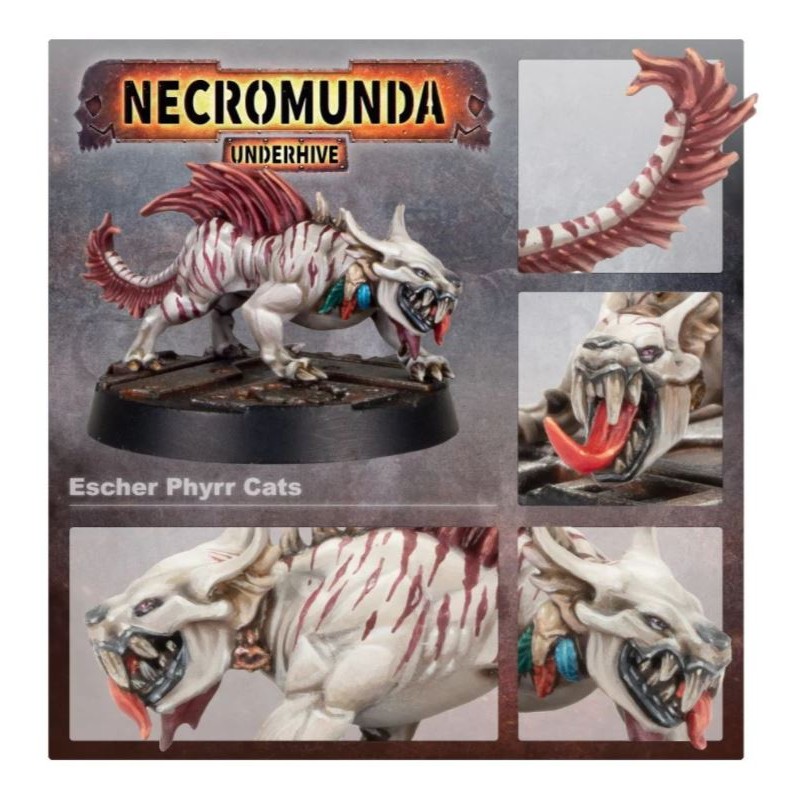 Ajoutez des bêtes exotiques à votre gang d'Escher avec deux chats Phyrr - ces créatures mystérieuses sont rapides, féroces et fidèles à leur propriétaire. Elles offrent à la fois de nouvelles options tactiques pour vos parties de Necromunda, et une opportunité intéressante de peinture et de modélisation.