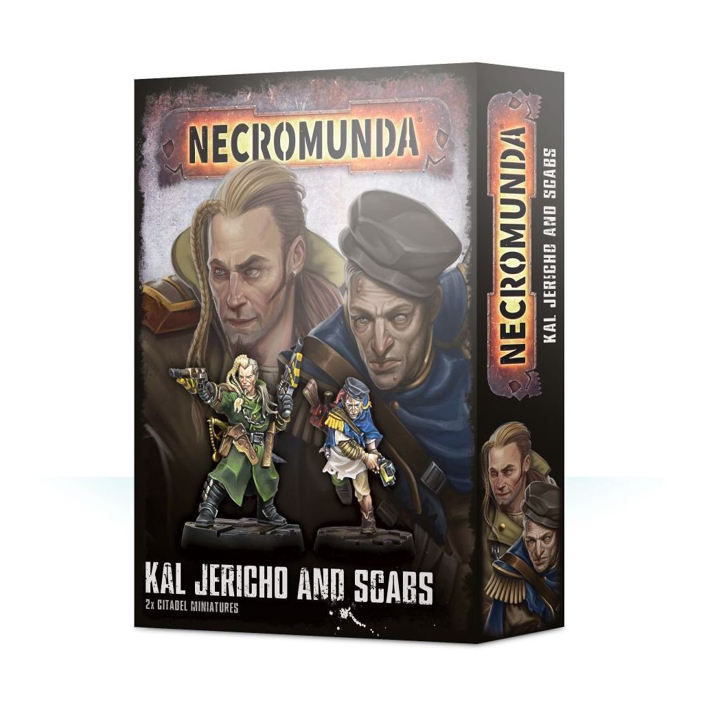Kal Jericho et Scabs peuvent être embauchés par n'importe quel gang de Necromunda en quête d'avantage sur ses rivaux. Kal est mortel à courte portée, de par son expertise avec sa paire de pistolets radiants laser, et si d'aventure des ennemis survivent à sa grêle de tirs, il n'est pas manchot non plus avec son sabre de duel. C'est une recrue de choix pour votre gang si vous prévoyez de vous frotter pied à pied à un gang adverse. Si le moindre ennemi échappe à Kal, Scabs veille. Son flingue et son fusil à plasma sont à la hauteur de n'importe quelle opposition, ce qui fait de lui un formidable soutien dans toute mission impliquant Kal, de sorte que le duo a sa place chez n'importe quel gang.
