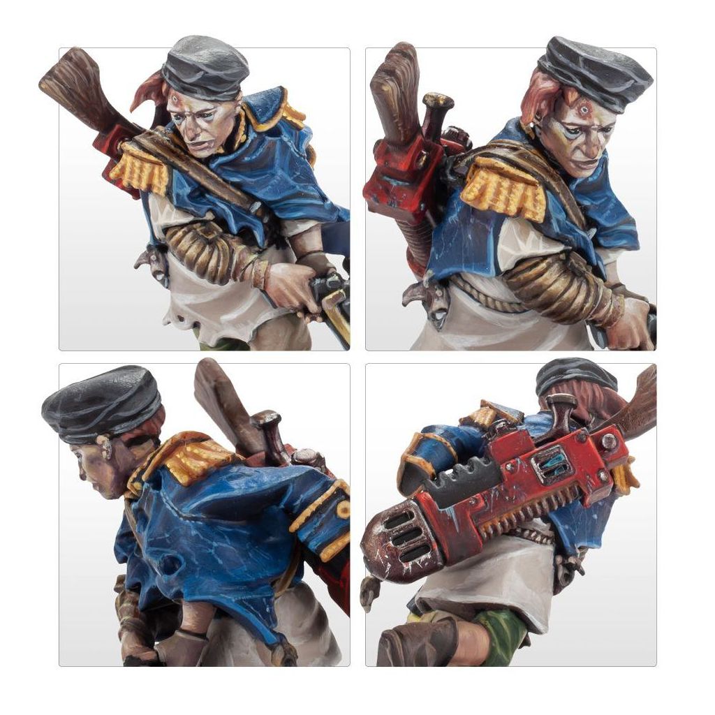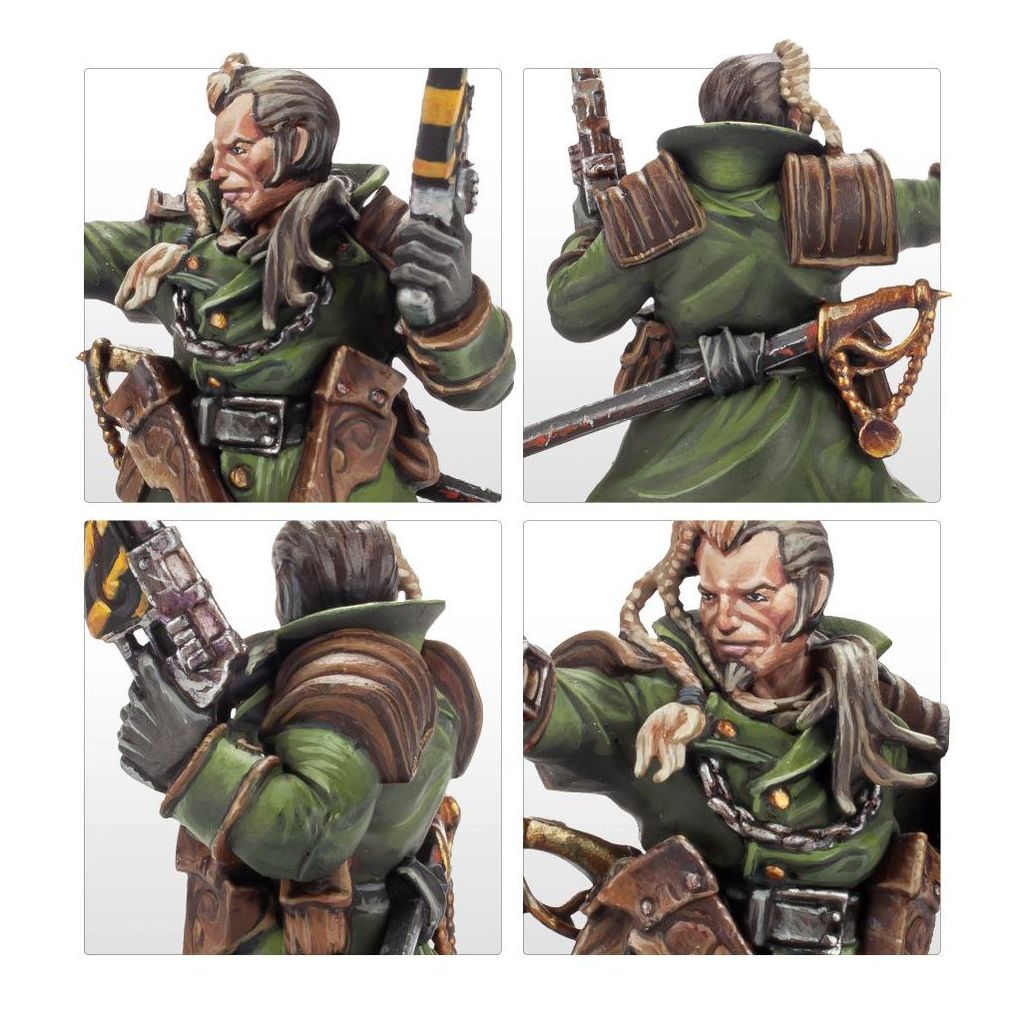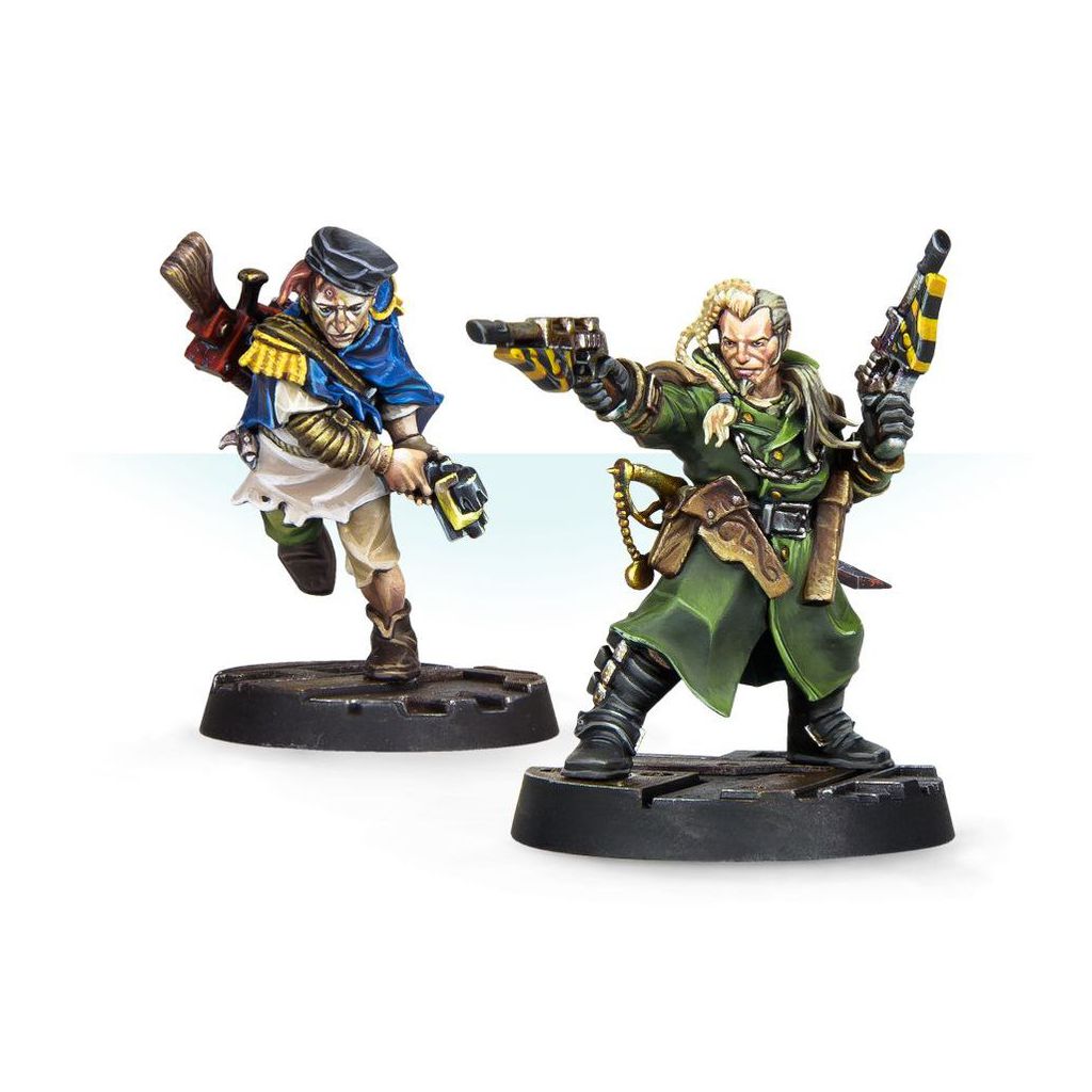 Ce set contient deux figurines plastique, l'héroïque Kal Jericho et son fidèle sbire Scabs. Ils sont fournis en 14 composants, plus deux socles ronds en plastique pour Necromunda – 32mm pour Kal, et 25mm pour Scabs.