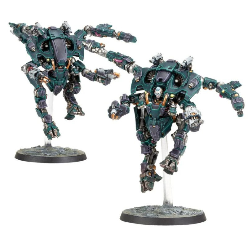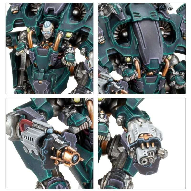 Chaque Ash Wastes Arachni-rig peut être assemblé avec le cockpit fermé ou ouvert pour révéler le pilote, qui peut avoir une tête parmi deux au choix. Les combinaisons sont positionnées en train de bondir dans les airs. Les hobbyistes aventureux peuvent retirer les chevilles des articulations des bras et des jambes pour adapter davantage la pose.
