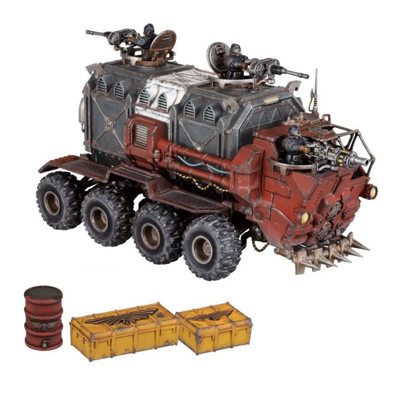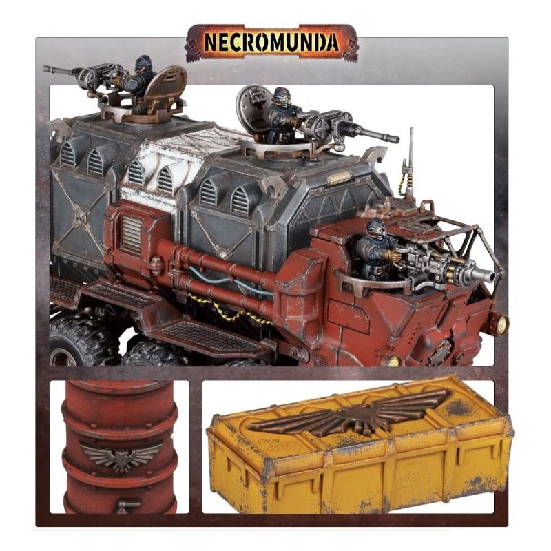 Description du produitLa Guilde de la Monnaie règne sur les routes de Necromunda. Elle transporte des marchandises entre les ruches et, pour un prix conséquent, peut même faire passer des armes et des gens en contrebande. Traverser les désolations arides, irradiées et violentes est une affaire risquée, c'est pourquoi la guilde monte des convois de Cargo-8 Rideghaulers. Ces véhicules massifs sont parfaits pour franchir les dunes grâce à leurs énormes roues et leurs moteurs robustes, et remorquer des conteneurs blindés dans les Grandes Désolations Équatoriales, mais leur véritable point fort est leur modularité: on peut facilement les équiper de suffisamment de canons pour en faire des forteresses mobiles, prêtes à repousser les pillards.
