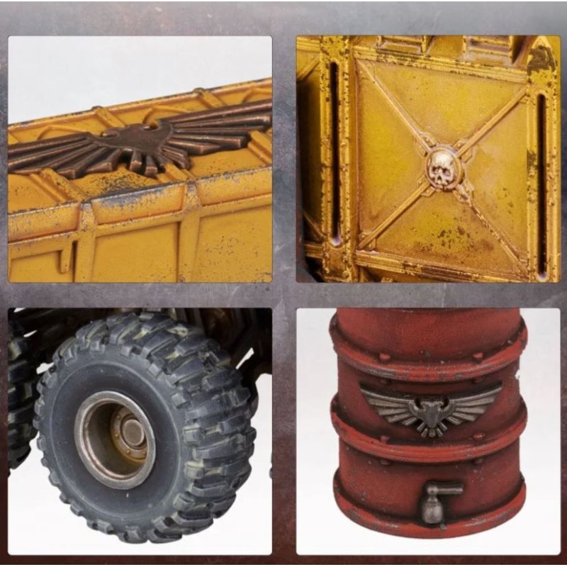 Description du produitLa Guilde de la Monnaie règne sur les routes de Necromunda. Elle transporte des marchandises entre les ruches et, pour un prix conséquent, peut même faire passer des armes et des gens en contrebande. Traverser les désolations arides, irradiées et violentes est une affaire risquée, c'est pourquoi la guilde monte des convois de Cargo-8 Rideghaulers. Ces véhicules massifs sont parfaits pour franchir les dunes grâce à leurs énormes roues et leurs moteurs robustes, et on peut facilement les équiper de suffisamment de canons pour en faire des forteresses mobiles, prêtes à repousser les pillards. Quand on lui attache des remorques, le Ridgehaluer ressemble à un vrai train routier, tractant des conteneurs blindés et des marchandises à travers les Grandes Désolations Équatoriales.