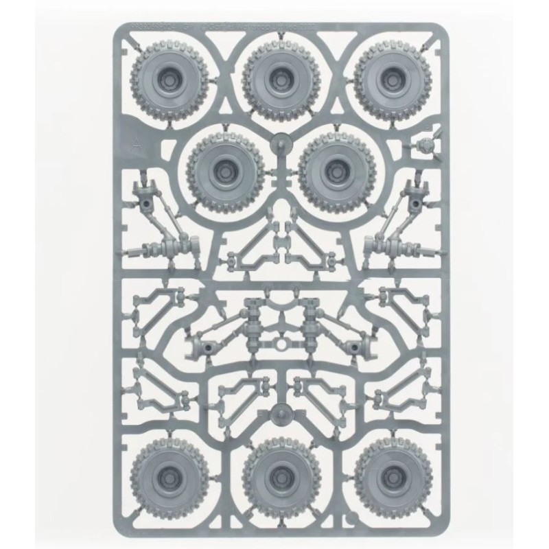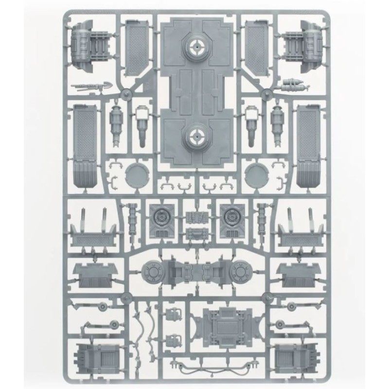 Ce kit plastique vous permet d'assembler un Ridgehauler Trailer, à utiliser avec un Cargo-8 Ridgehauler. Vous pouvez donner 6 ou 8 roues à cette remorque, et ses options d'assemblage modulaire vous permettent de l'aligner avec un plateau à cargaison pouvant transporter des gangers et des marchandises, ou avec un Conteneur Blindé du Munitorum, qui peut avoir jusqu'à deux mitrailleuses ou bolters Storm. Le Ridgehauler Trailer peut aussi être aligné avec un amarrage arrière ajustable, ce qui vous permet d'accrocher d'autres remorques à votre train routier – chaque Cargo-8 Ridgehauler peut tracter jusqu'à quatre remorques.