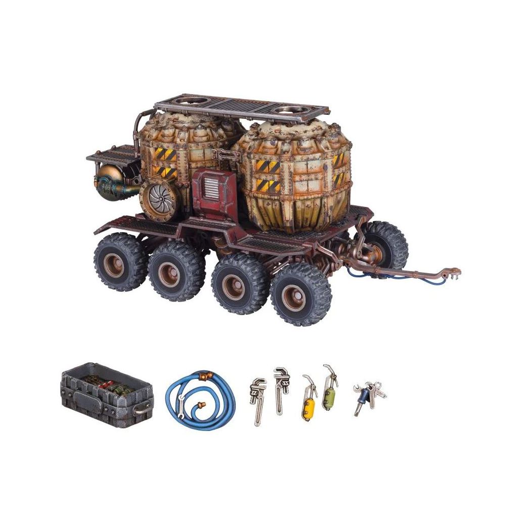 Description du produitLa Guilde de la Monnaie règne sur les routes de Necromunda. Elle transporte des marchandises entre les ruches et, pour un prix conséquent, peut même faire passer des armes et des personnes en contrebande. Traverser les désolations arides, irradiées et violentes est une affaire risquée, c'est pourquoi la guilde monte des convois de Cargo-8 Rideghaulers. Ces véhicules colossaux peuvent faire traverser en relative sécurité les territoires outre-ruche à d'énormes volumes de ressources, comme le prométhium, le carburant aussi volatile que précieux utilisé dans tout l'Imperium. Un approvisionnement sûr en prométhium est un avantage vital dans les désolations, et les profits que l'on peut faire en réussissant à livrer une cargaison valent le risque de se percher sur un réservoir de gaz explosif pendant une fusillade routière.