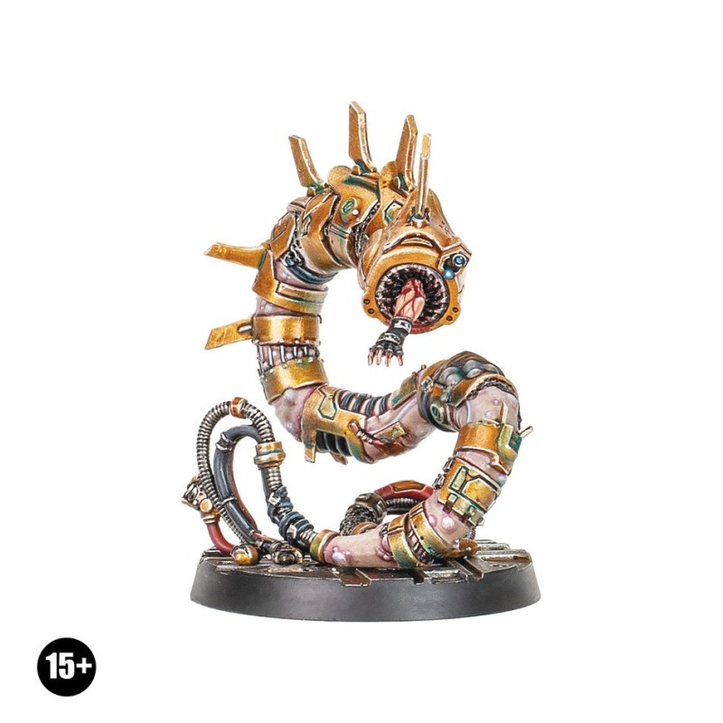 Description du produitLe Serviteur des Silencieux est une construction consciente sortie des rêves de la Chambre Stellaire Delaque. Amalgame de souvenirs, de plastacier et de déchets génétiques, il est plus grand qu'un Ogryn lorsqu'il se redresse, et sa "mâchoire" circulaire tourne en permanence en une danse mortelle.