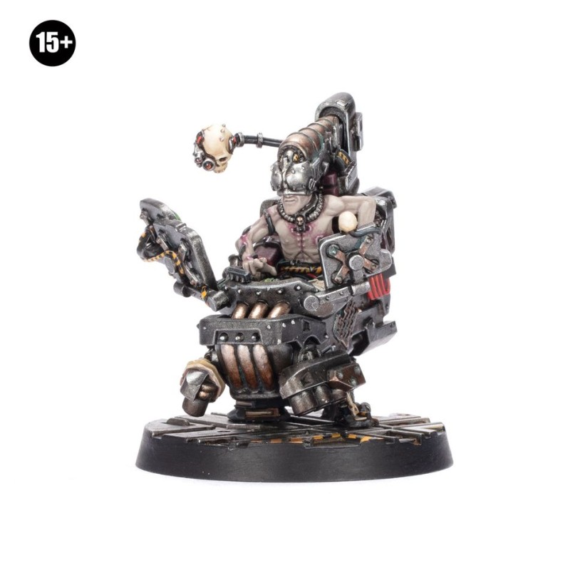 Ce kit en résine permet d'assembler Silberlant Sevos, un Mercenaire qui peut être recruté par votre gang dans les parties de Necromunda. Depuis sa chaise à suspenseurs, il offre de nombreux atouts avant, pendant et après un combat, en utilisant ses renseignements mal acquis pour vous donner l'avantage sur vos ennemis. Si vous aimez prendre l'ascendant au combat grâce à des coups bas, c'est l'homme qu'il vous faut.