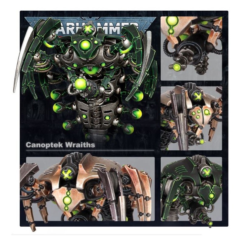Description du produitLorsqu’un monde-nécropole est endormi, les Canoptek Wraiths sont ses yeux et ses oreilles. Ils planent dans les halls poussiéreux, guettant les intrus et vérifiant le bon fonctionnement des systèmes. La caractéristique la plus remarquable du Canoptek Wraith est sa matrice de déstabilisation dimensionnelle: un disrupteur de phase qui lui permet d’effectuer des bonds dans et hors de la réalité. Cette matrice a d’abord été conçue pour permettre aux Wraiths d’atteindre l’intérieur des machines pour les réparer, mais cette capacité est tout aussi appréciable pour s’occuper des intrus. Un Canoptek Wraith peut déphaser ses tentacules griffus à l’intérieur de son adversaire et de les resolidifier pour trancher artères, tendons et autres organes sans laisser la moindre plaie externe.
