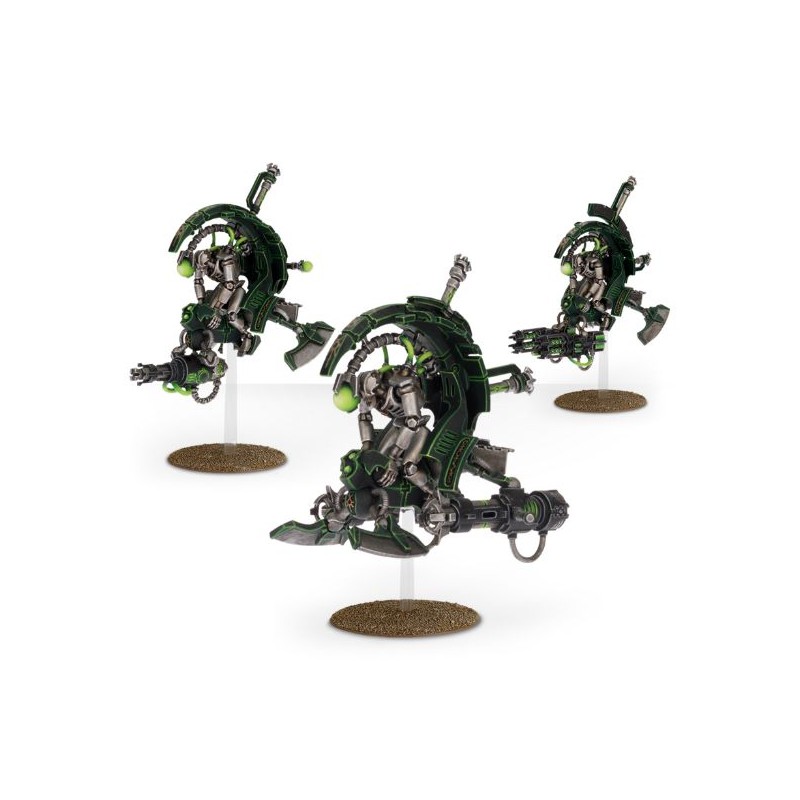 Description du produitCe kit plastique contient 162 éléments permettant d'assembler trois mécanoptères nécrons. Il est fourni avec trois socles volants accompagnés de deux petites et deux grandes tiges transparentes, ainsi que deux planches de décalcomanies nécrons. Ces figurines sont livrées non peintes et non assemblées.