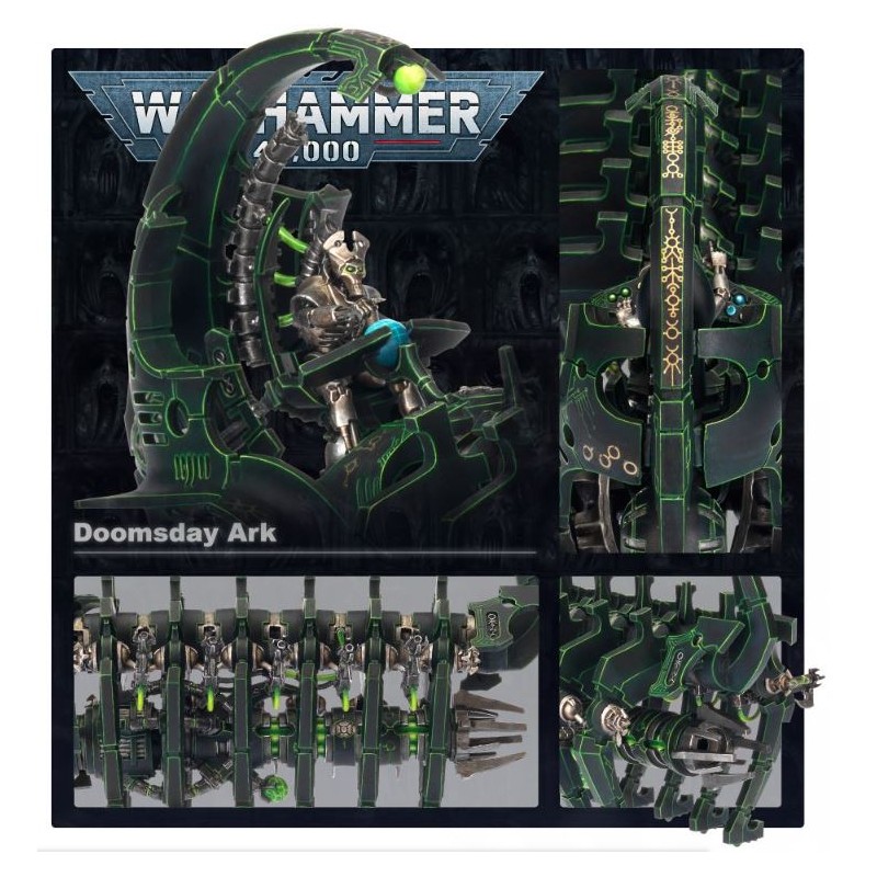 L'arche du Jugement Dernier est une grande figurine dont la présence est intimidante sur le champ de bataille. Ses immenses réacteurs sont disposés à l'arrière de la figurine, et sa coque présente des détails tels que des orbes et des glyphes de dynastie. Un noble nécron est juché à l'arrière de l'arche, et surplombe une structure évoquant une cage thoracique, elle-même servant de réceptacle à un terrible canon Jugement Dernier.
