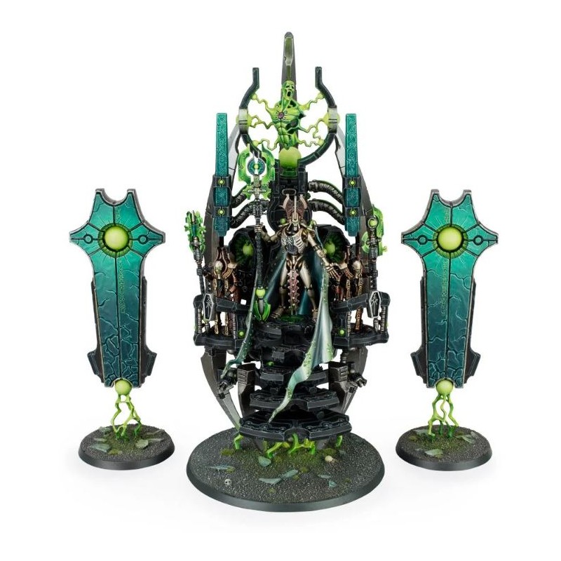 Description du produitLe Roi Silencieux se rend au combat sur son Estrade de la Domination, flanqué des phaërons de son Triarcat, tandis que de crépitants menhirs de noctilithe orbitent autour de lui. Il déchaîne des pouvoirs annihilateurs dignes des dieux sur ses ennemis effrayés, tandis que son autorité absolue irradie les légions des Nécrons et les pousse à la victoire inéluctablement.