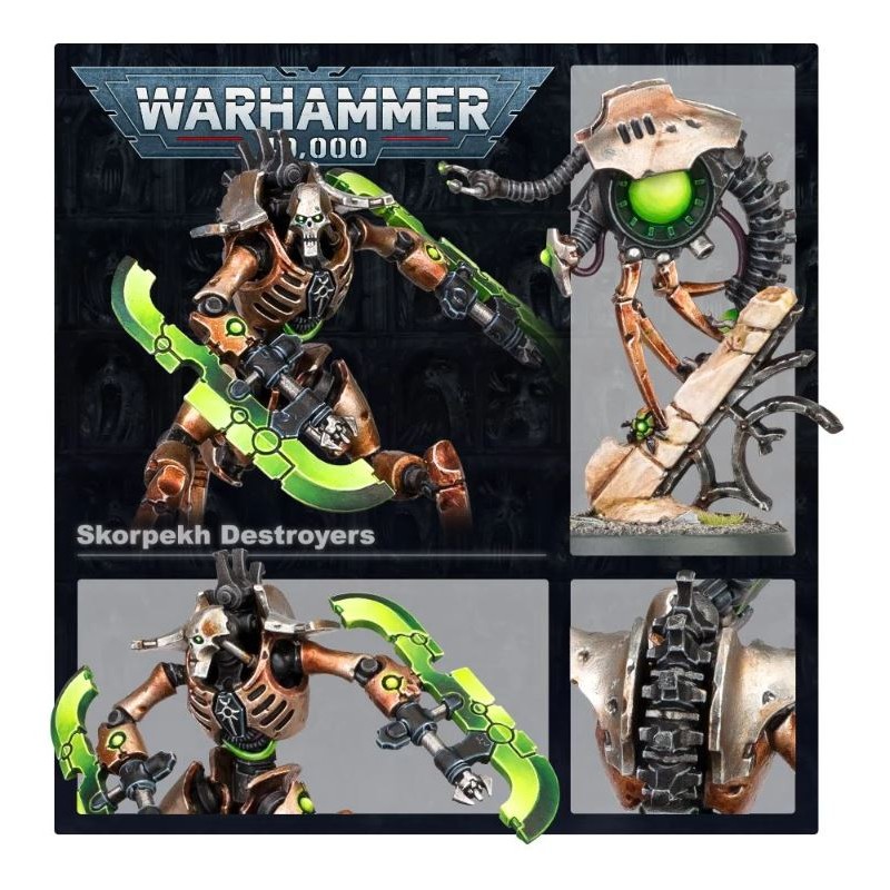 Ce kit permet d'assembler trois Destroyers Skorpekhs, deux armés de fauchons d’hyperphase et un armé d'une faux d'hyperphase, ainsi qu'un Plasmacyte. Le tout est à emboîter, et ne nécessite donc pas de colle. Le kit est fourni en 29 composants plastique, plus trois socles ronds Citadel de 50mm à trou hexagonal et un socle rond Citadel de 28,5mm à trou hexagonal.