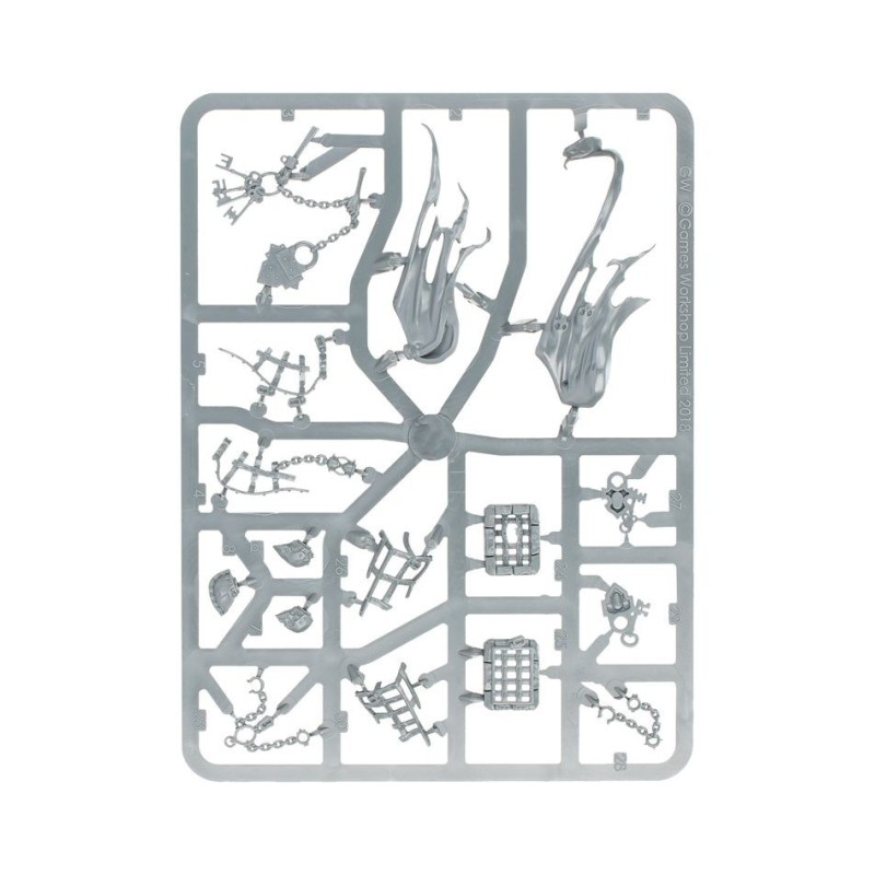 Les figurines de cette boîte sont faciles à personnaliser. L'Esprit Tourmenteur dispose d'un choix de trois têtes, et les Mânes Enchaînés disposent d'un choix de quatre masques différents. Ils disposent également d'options décoratives pour leurs socles, comme des chaînes, des cages, et plus encore.