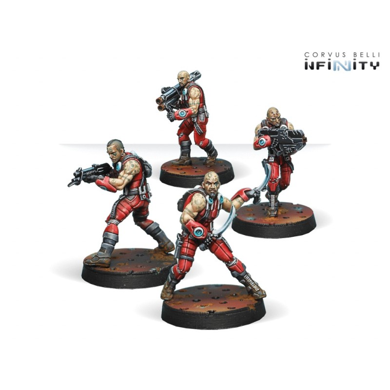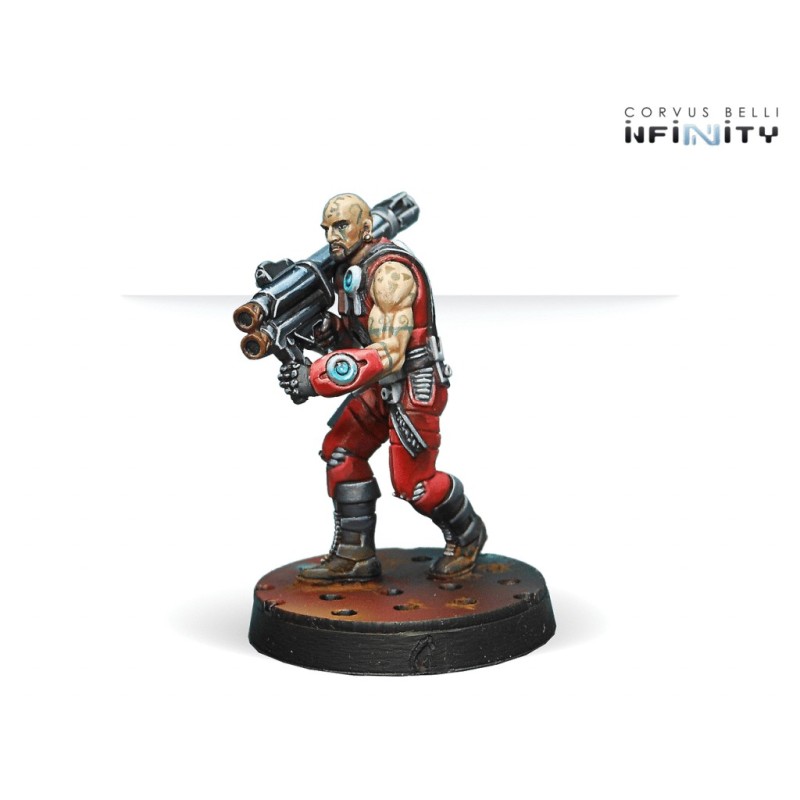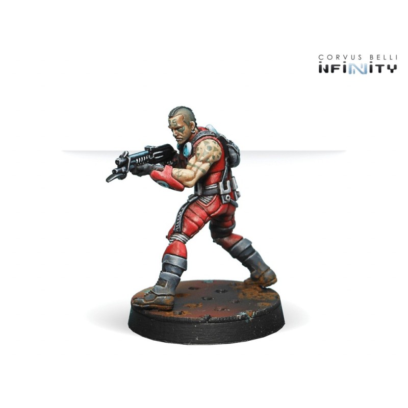 Description du produitLes Jaguars sont un autre trait de génie de Juan Sarmiento. Connu sous le nom du " Général Mexicain ", Sarmiento fut l'un des pères fondateurs du Corregidor Jurisdictional Command. Quand tout le monde a vu les organisations semblables à des bandes de Maras, qui sont nées du chaos initial de Lazareto, comme un problème à résoudre, il les a vues comme une source fiable de guerriers vétérans, rendus insensibles par une histoire de violence de rue et avec les instincts de tueurs aiguisés de félins enragés. Les forces de l'ordre de Corregidor ne déconne pas, donc chaque fois que les Alguaciles de Sarmiento s'emparent d'un vato ou d'un tsotsi prometteur, ils lui donnent le choix : une promenade éternelle sans combinaison spatiale, ou un séjour dans la nouvelle unité Jaguar. La plupart ont pris la deuxième option et ont vécu assez longtemps pour le regretter.