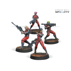 Les 27 figurines de l'ensemble de la gamme CodeOne de l'armée des Nomades, ainsi que le livret de règles CodeOne en anglais.