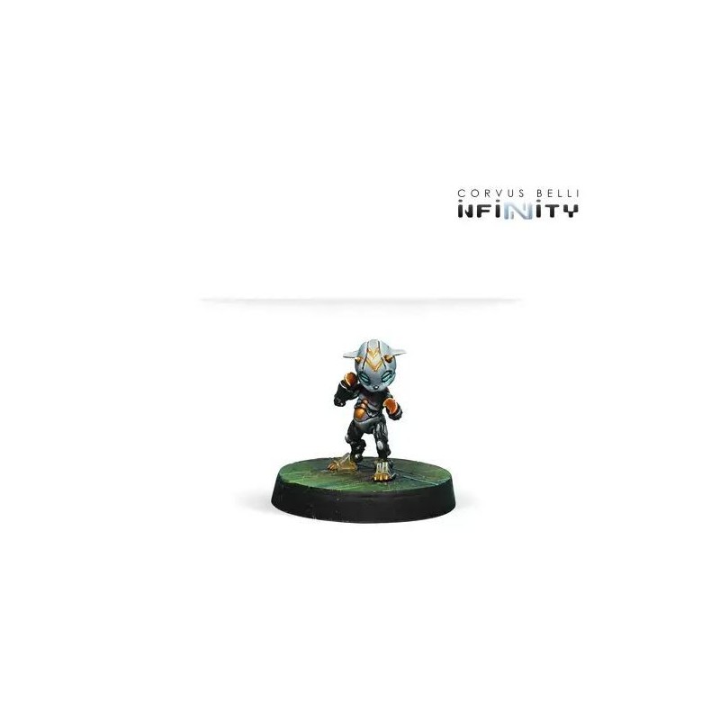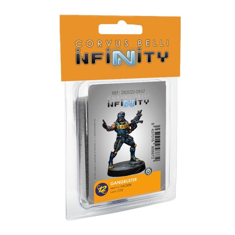 Ce blister comprend trois figurines : Un Gangbuster Hacker et deux MadTraps. Il n'y a pas de meilleure option pour arrêter l'avancée de l'ennemi que d'inclure un Gangbuster dans votre armée O-12.