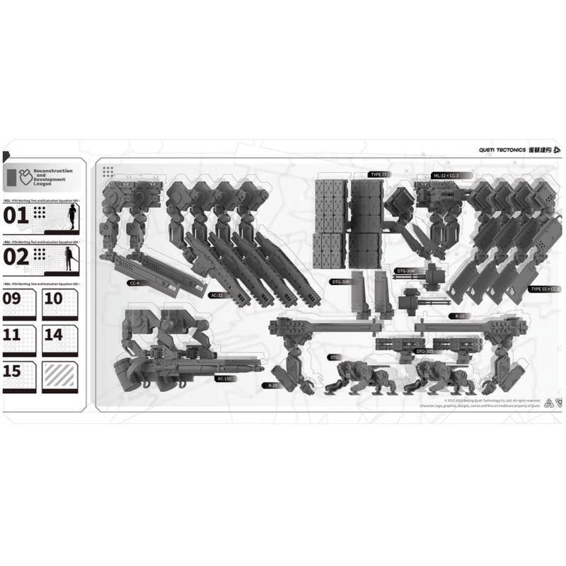 *Chaque pièce de mécha est livrée avec au moins une carte de pièce, certaines pièces ont plusieurs options, il y aura donc plus de cartes de pièces que de modèles.