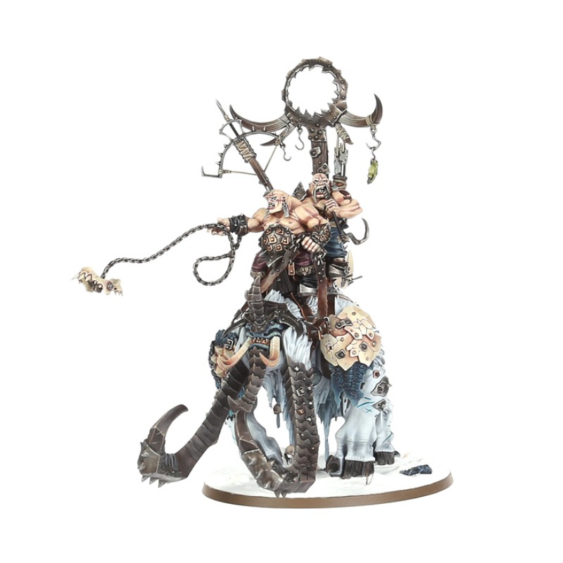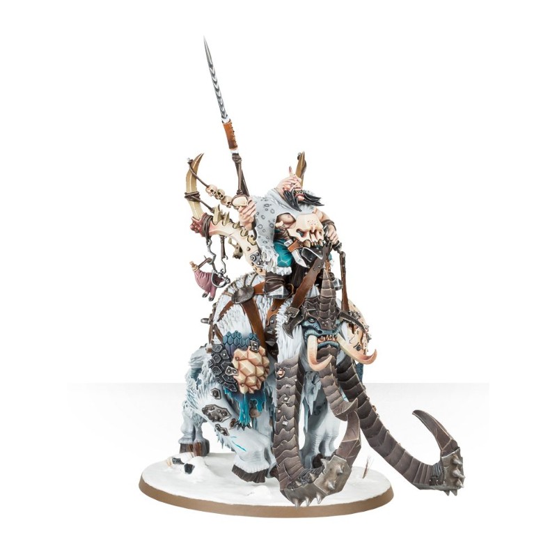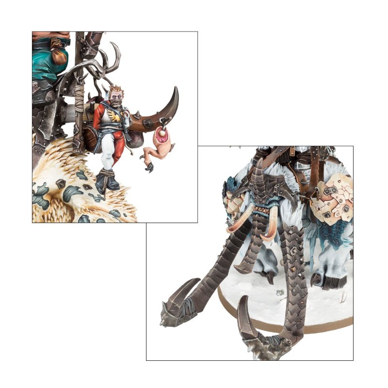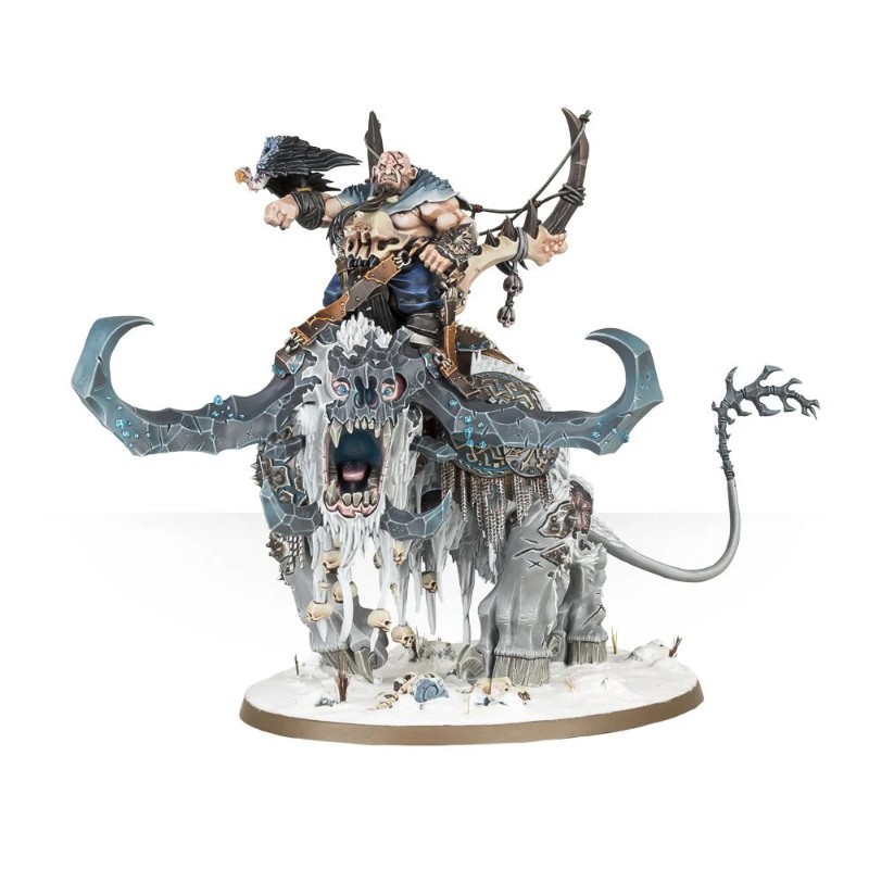 Description du produitLe Huskard Torr conduit les Beastclaw Raiders jusqu'au terrain de chasse qu'est le champ de bataille. Sur son ordre vociférant, les créatures soufflent un vent glacé, qui gèle le sol et change les ennemis en statues scintillantes soudain privées de vie. Les rares rescapés doivent alors faire face à la force brute et aux terribles défenses du Thundertusk.