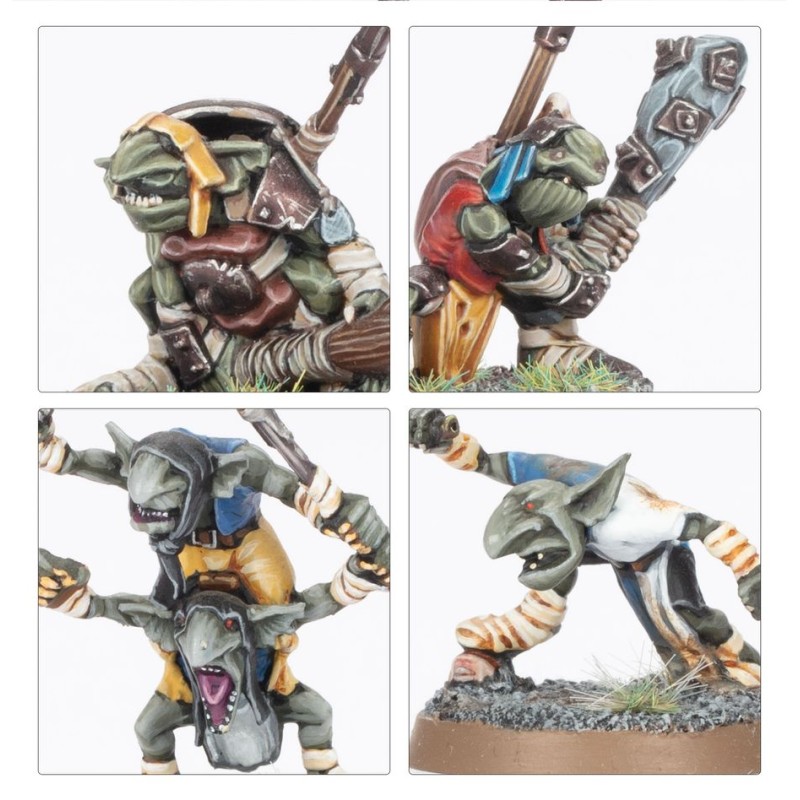 L'unité de Gnoblars propose 13 têtes interchangeables avec tous les corps du kit.