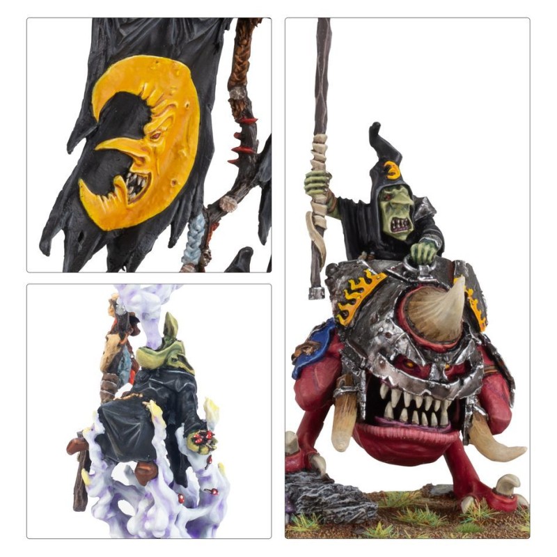 - Menez votre armée avec un Chef de Guerre monté sur un Squig, inspirez vos troupes avec une énorme Grande Bannière et faites régner une pagaille magique avec un Chamane