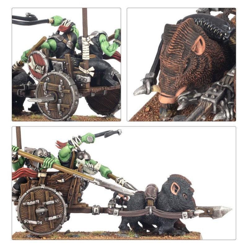 - Deux chars de bric et de broc tirés par des sangliers de guerre quasi inarrêtables pour les Tribus d'Orques & Gobelins