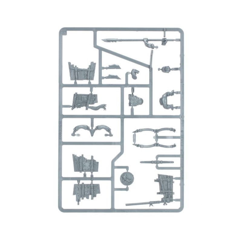 Ce kit contient également un choix de têtes interchangeables pour les équipages d'orques ainsi que l'option de décorer un des casques avec une intimidante mâchoire postiche.Ce kit est composé de 82 éléments en plastique et est fourni avec 2x Socles Rectangulaires Citadel de 50mmx100mm. Ces figurines sont fournies non peintes et nécessitent assemblage
