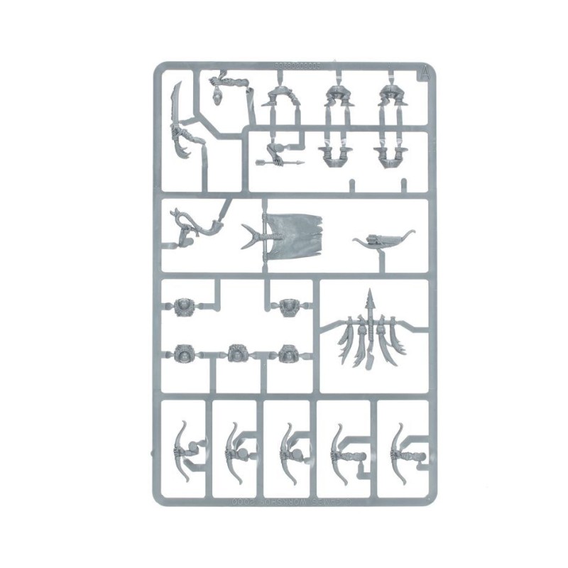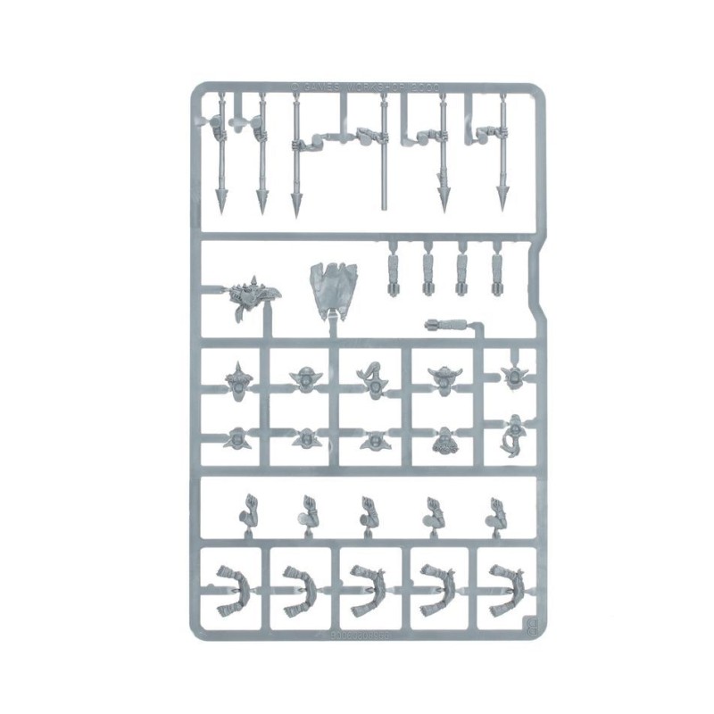 Ce kit contient divers styles de boucliers, de positions de jambes, de torses en justaucorps, de êtes grimaçantes, de carquois et de bras d'armes, tous étant interchangeables pour garantir la diversité des apparences quelle que soit la taille de votre horde.