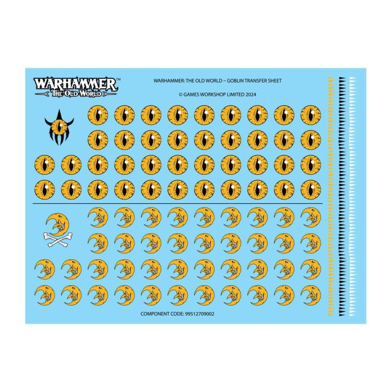 Ce kit est composé de 260 éléments en plastique et de 16x Socles Rectangulaires Citadel de 25x50mm. Il contient également une Planche de Décalcos de Gobelins pour Warhammer: The Old World, proposant 84 décalcos pour décorer votre armée. Ces figurines sont fournies non peintes et nécessitent assemblage.