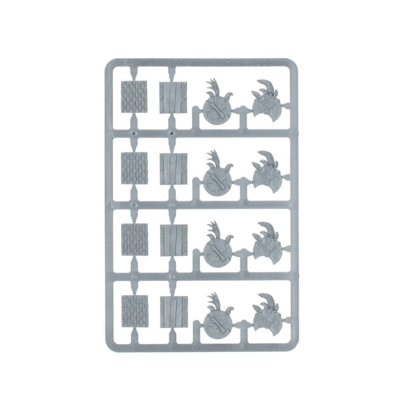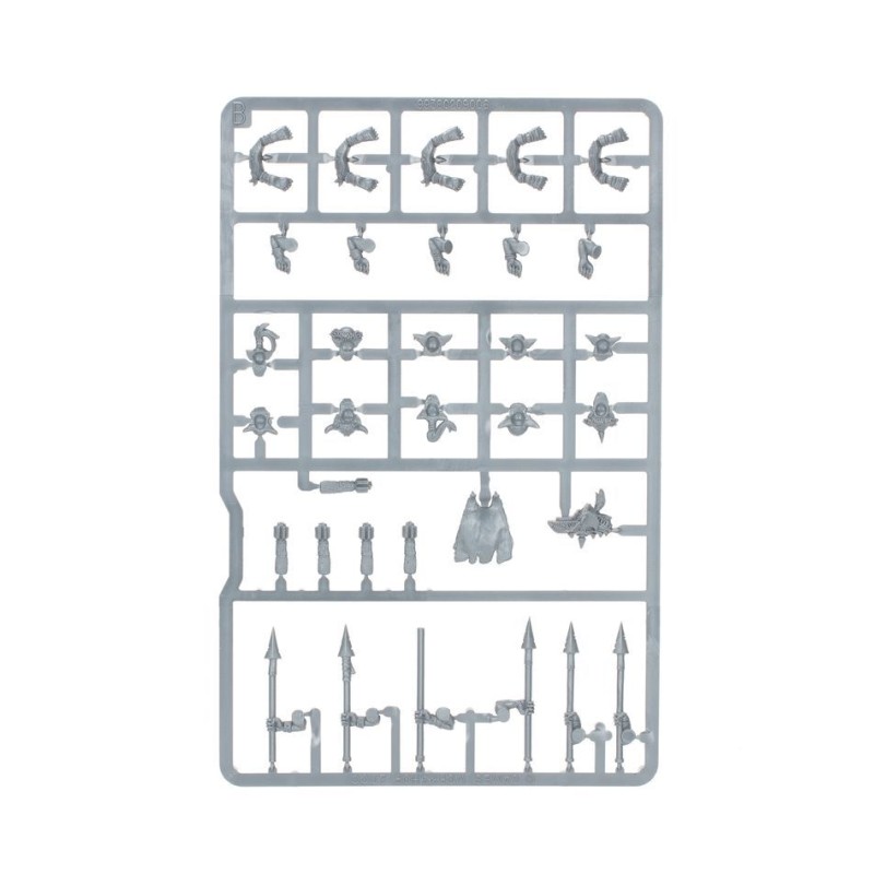 Ce kit contient divers styles de bouclier, de torses en justaucorps, de têtes grimaçantes, de carquois et de bras d'arme, tous interchangeables pour vous permettre de garantir la diversité des apparences, même dans les bandes nombreuses.